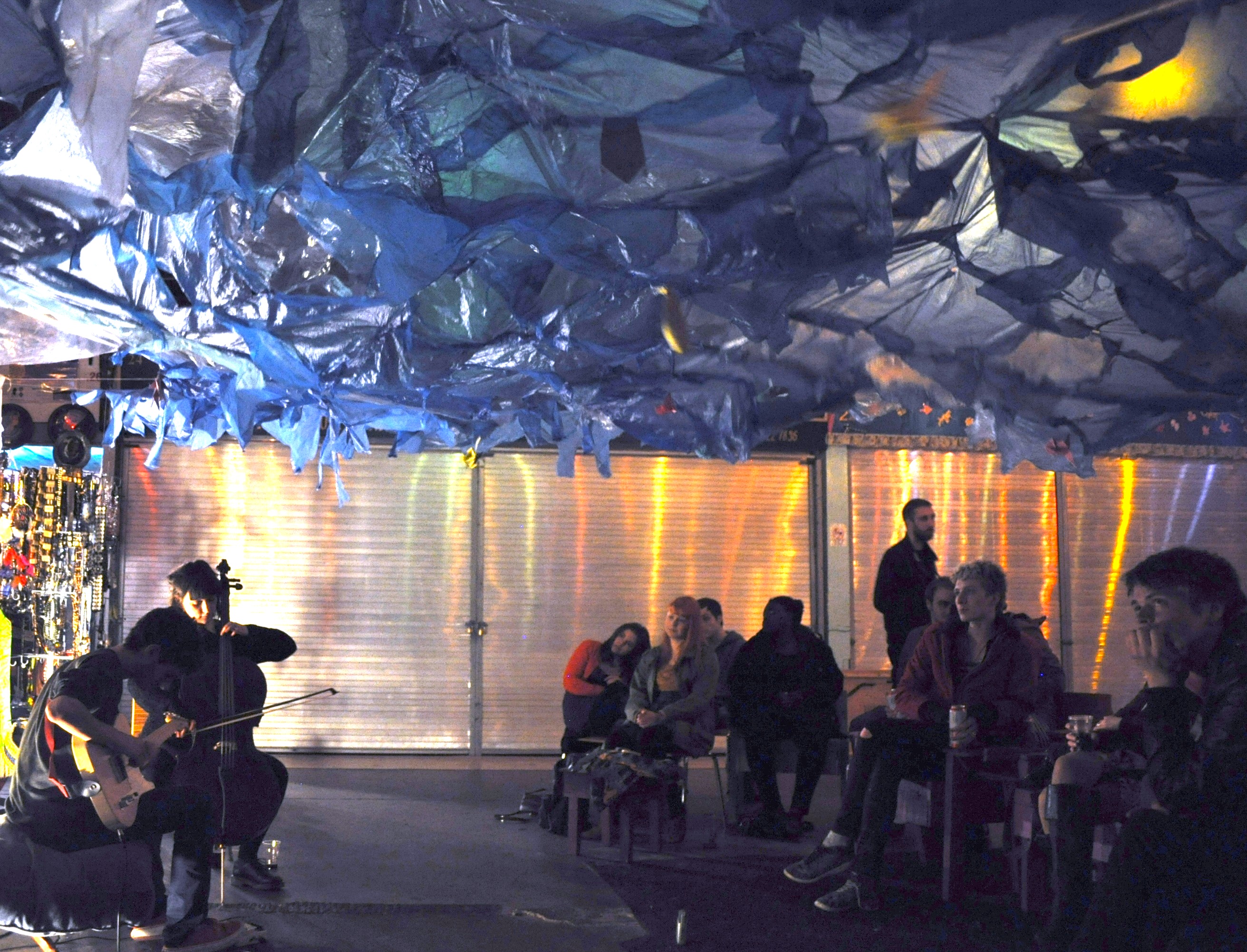 Flow of Effra is a series of site specific performances and installation in London Silk Worm, The Brick Box Tooting Ori Festival, The Brick Box Brixton 2012 The work explores the underground river of Brixton, the Effra, which is re-imagined through sound and movement, materialized by blue plastic bags found at Brixton Market. The abandoned material that is ubiquitous in Brixton, was turned into an artificial element of nature. At the end of Ori festival exploring West African spirituality, the river was paraded through Brixton, honoring the river goddess Oshun, according to Yoruba tradition. Maps of river Effra that runs underground on the site of parade were handed to audience. Events curated by Jacob V Joyce http://jacobvjoyce.com/ http://www.thebrickbox.co.uk/